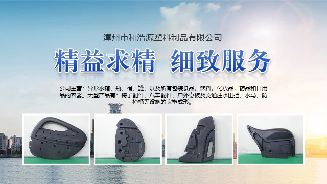 漳州市和浩源塑料制品有限公司是漳州塑料制品行業(yè)的知名企業(yè),本公司擁有專業(yè)的團(tuán)隊,從產(chǎn)品設(shè)計、模具開發(fā)到生產(chǎn),并具有先進(jìn)的生產(chǎn)設(shè)備,精湛的生產(chǎn)工藝,嚴(yán)格的管理,具備根據(jù)用戶需要進(jìn)行設(shè)計、制造生產(chǎn)用戶所需產(chǎn)品的能力。 公司主營:異形水箱、瓶、桶、罐、以及所有包裝食品,飲料,化妝品,藥品和日用品的容器。大型產(chǎn)品有:椅子配件、汽車配件、戶外桌板及交通注水圍擋、水馬、防撞桶等設(shè)施的吹塑成形。 “誠實(shí)守信,互惠共贏”,是我們的經(jīng)營理念;“精益求精,細(xì)致服務(wù)”,是我們的工作準(zhǔn)則,“堅持行業(yè)標(biāo)準(zhǔn),創(chuàng)造時代精品,追求優(yōu)良的品質(zhì)”,是我們的質(zhì)量標(biāo)準(zhǔn)和目標(biāo);“以人為本,科技創(chuàng)新,簡捷嚴(yán)明,管理規(guī)范”是我們管理機(jī)制的核心內(nèi)容;“生產(chǎn)優(yōu)良產(chǎn)品,提供細(xì)致的服務(wù)”,是我們的承諾。